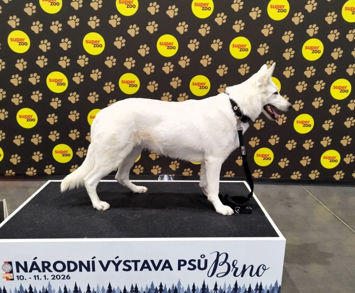 Vzhledem k tomu, že máme doma dvě nakryté slečny, jednu bílou, jednu "colorful", tak jsme ani nic nehlásili. Předvely se pouze tři holky po našem odchovu Izvorovi a jedna slečna po našem krycím psovi Largovi. V neposlední řadě pak skoro Junior šampionka, fenka z našeho loňského "W" vrhu.